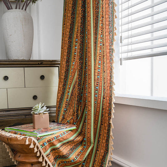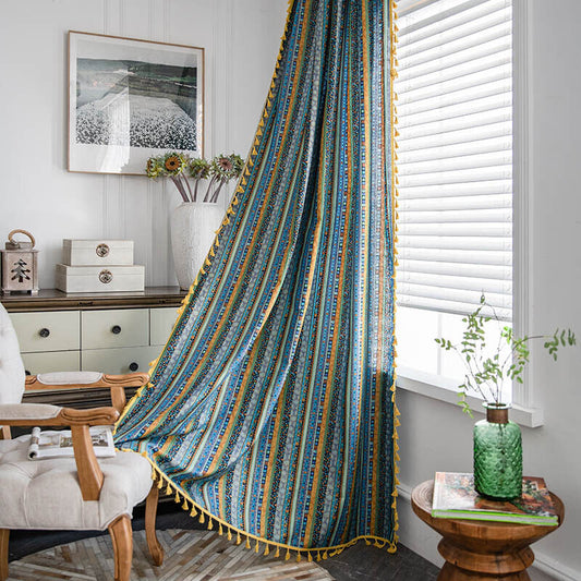 Yellow Bohemian Ethnic Style Cotton Linen Printed Curtains for Windows