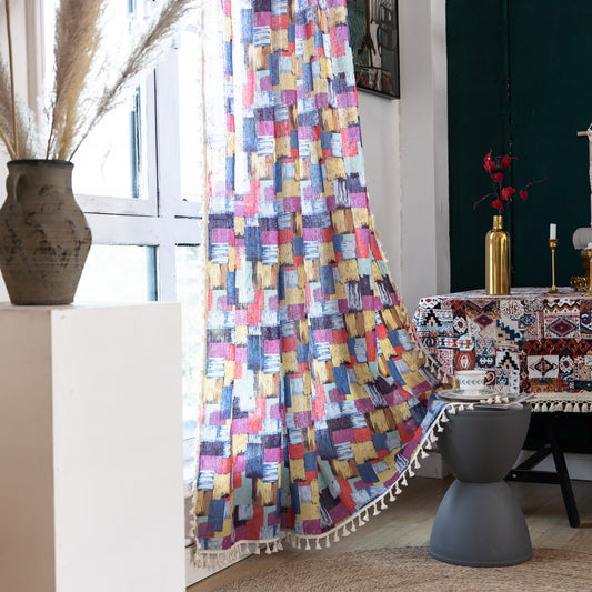 Bohemian Ethnic Style Yellow Block Print Curtains for Kitchen and Bedroom