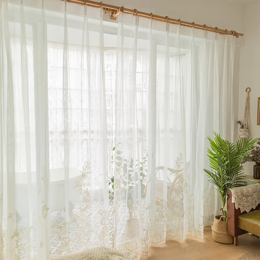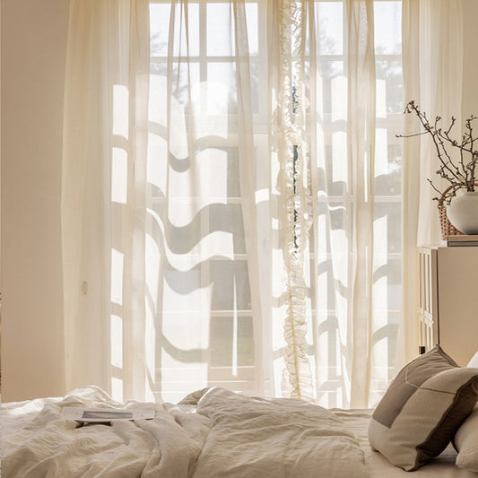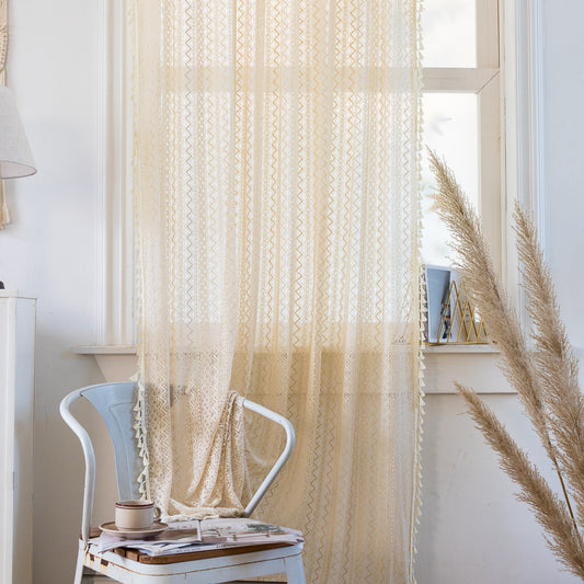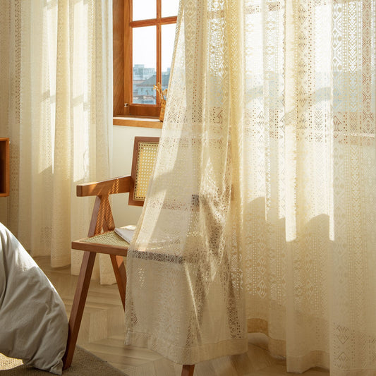 Elegant Hollow Woven Warm Beige Semi-Sheer Window Curtain