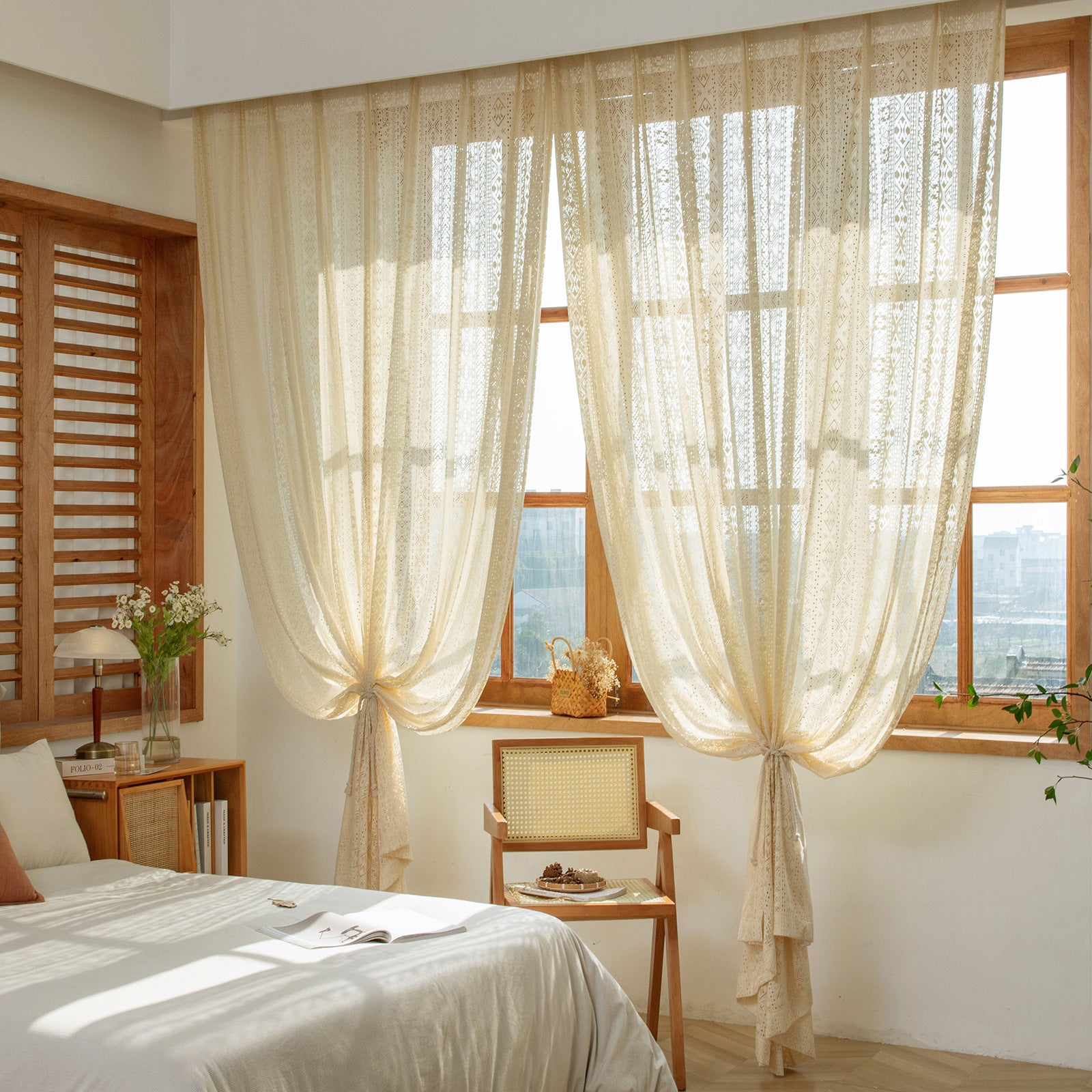 Elegant Hollow Woven Warm Beige Semi-Sheer Window Curtain